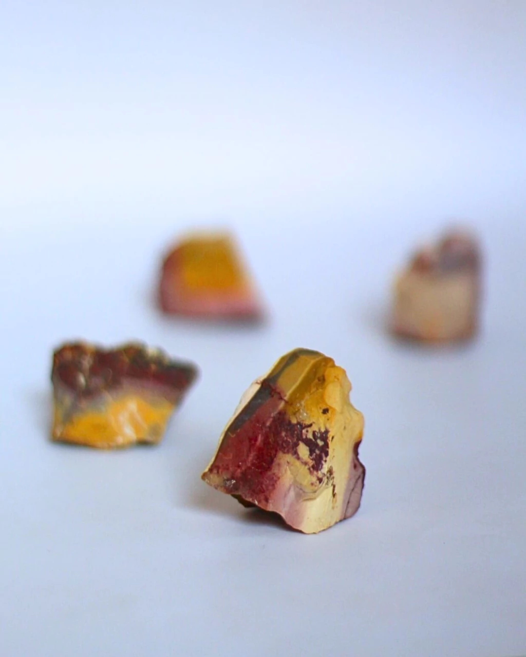 O Jaspe Mookaite é uma variedade única de jaspe originária da Austrália, reconhecida por suas cores vibrantes que variam entre tons de vermelho, amarelo, roxo e branco. Sua energia é fortemente energizante, promovendo vitalidade, coragem e presença no momento presente.