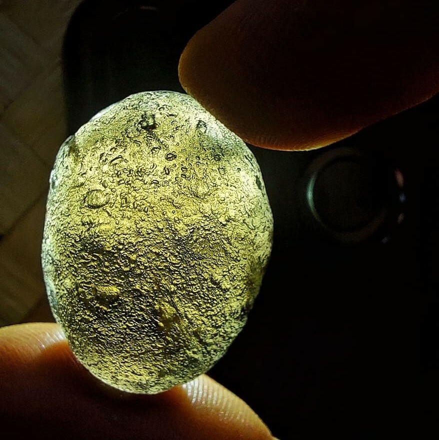 Tectitos são vidros naturais formados através do impacto de meteoros na superfície da Terra. A força do impacto gera temperaturas muito elevadas, que causam uma reação entre o material do meteoro e os componentes minerais do solo, formando este vidro espacial.